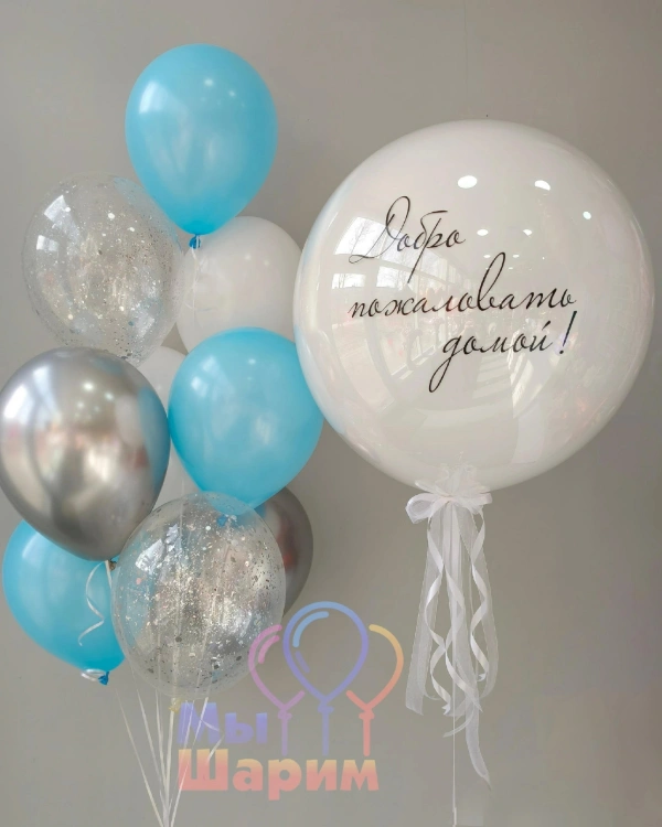- Малый размер — около 30 см. Стоимость примерно 180 рублей. Может содержать маленькую надпись или прослойку из конфетти, тонкую ленту. Интересно, что этот размер часто делают с прозрачным латексным шаром вместо баблс.