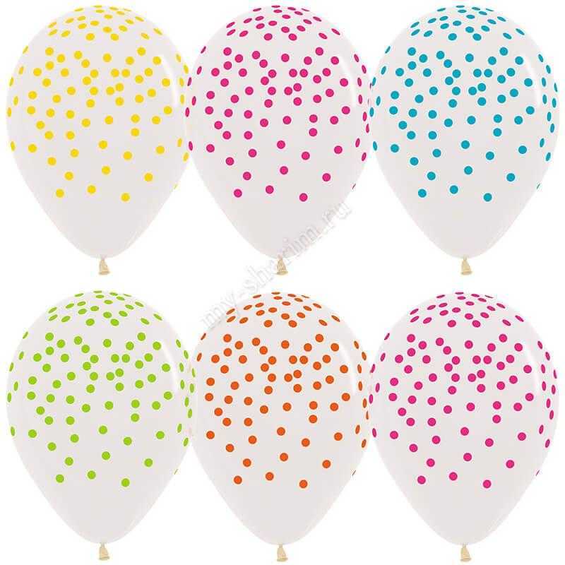 Шары одноцветные из натурального латекса колумбийского производства Sempertex. С рисунком. Отлично смотрятся в фонтане. Конфетти нарисовано на шаре .
