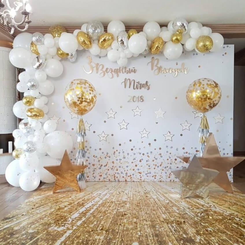 Гирлянда разнокалиберная белый-золотой