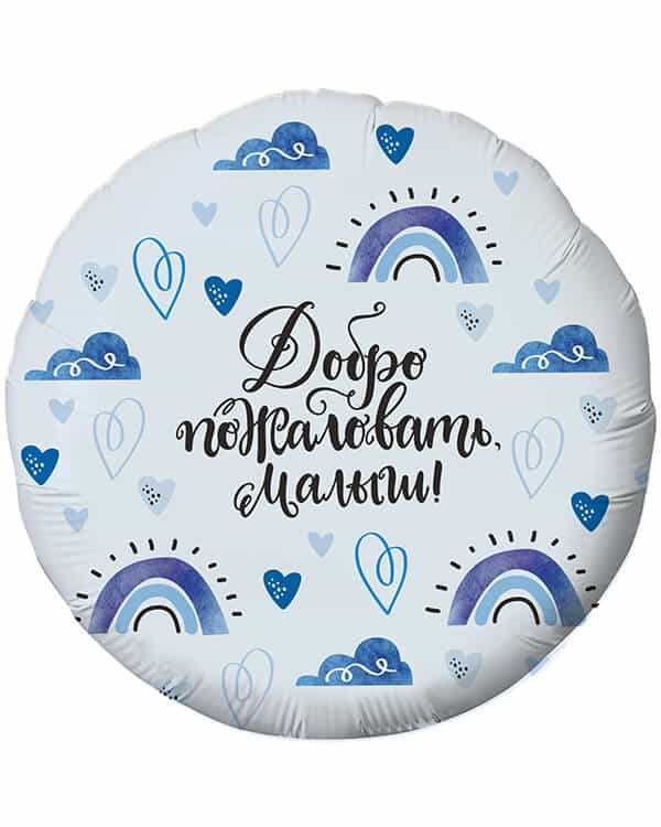 Главная страница » Каталог » Шары по событиям » Выписка » Для мальчика » Круг Добро пожаловать Малыш! (сердечки)